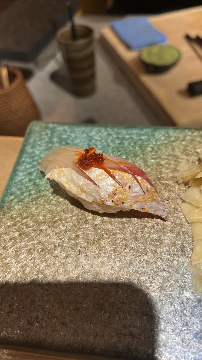 Really impressed by the experience I had here! It's such a good deal for $95. The ambiance is great, intimate but also casual. My favorites were the Chu-toro and the unagi. I wish I knew where they got their little gold flake sprayer because I would just bring one of those everywhere to add a little sparkle anywhere I go. I know some people complained about how quickly the fish come on but I actually liked the pace. We finished in about an hour 15, and I eat fast anyway. My only critiques are that I wish they'd had a dessert-ish final course instead of ending us at the unagi, because I left craving something sweet. I also wish they had a menu with everything we ate because who can keep track of that many fish??